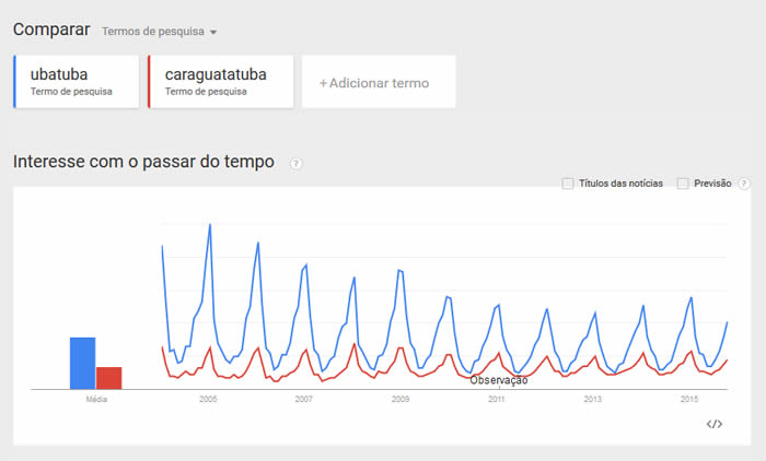 Imagine que você tem um site sobre viagens e quer escrever uma série de artigos sobre uma determinada praia, qual é a que tem mais potencial: Ubatuba ou Caraguatatuba? O Google Trends nos responde essa questão: