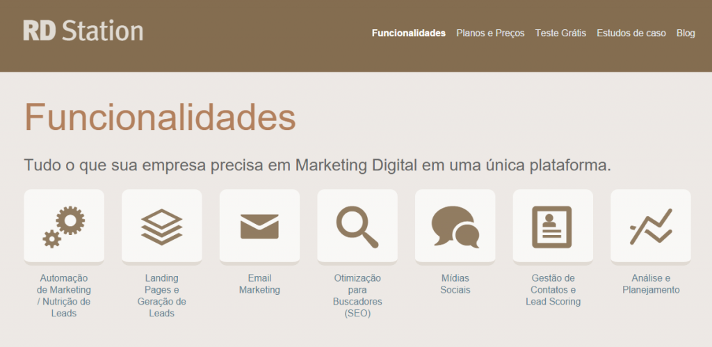 Se o Mailchimp é a ferramenta “gringa” queridinha das pessoas, sem sombra de dúvidas o RD Station é a ferramenta queridinha do mercado brasileiro. Criado pela Resultados Digitais, a plataforma do RD Station foca muito no processo de marketing e vendas da empresa, contando com um sistema de email marketing e automação muito bons!