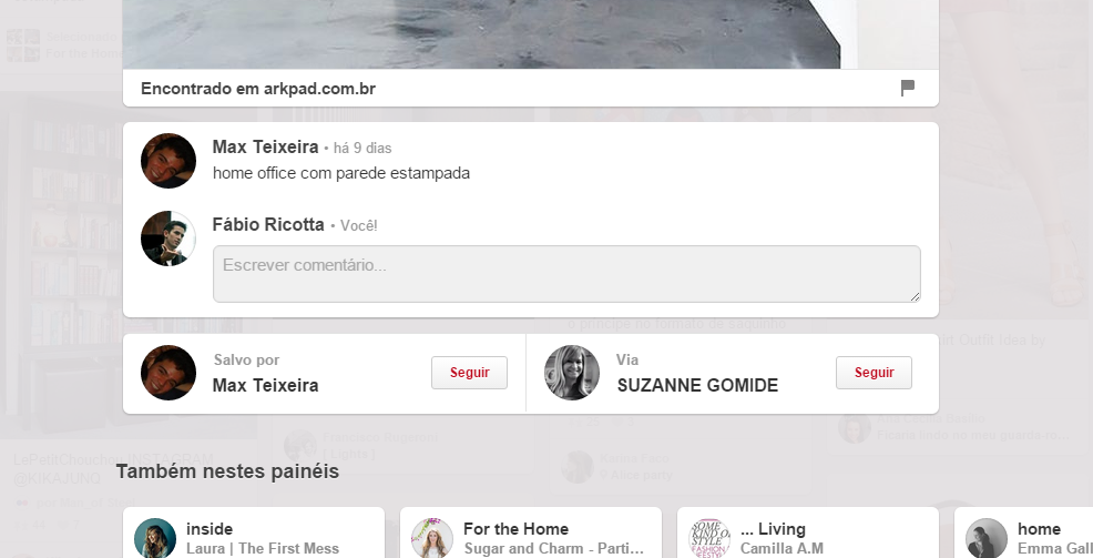 Estes pins serão jogados para a home da rede social e estarão visíveis aos amigos da pessoa que favoritou o conteúdo. Assim, aumenta-se a chance de receber futuros visitantes vindos do Pinterest. Isto é possível por conta do link maroto que é colocado como fonte, assim que visualizo um pin em tamanho real: