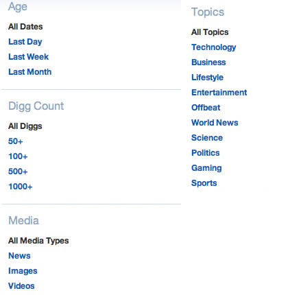 Para fechar o artigo, deixo a sugestão de você buscar os conteúdos de seu interesse dentro do próprio Digg.com. Se para você, inglês não é um problema, pesquisar quais conteúdos fizeram sucesso por lá também é uma boa ideia; e as análises para os agregadores no Brasil também valem para análise de conteúdos do Digg, que possui um sistema de busca cheio de recursos:
