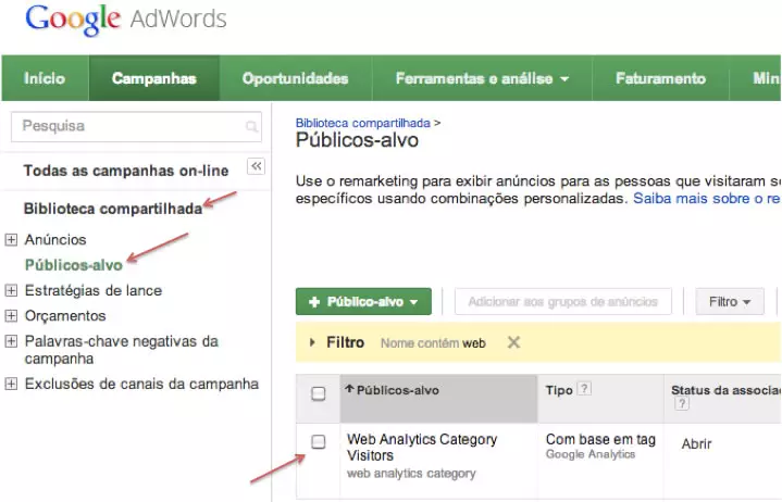 Para fechar a criação dessa lista de remarketing, você precisa associá-la a uma conta de AdWords: