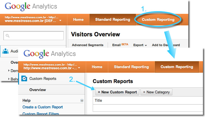 Pois bem, há 4 anos esta ideia está no ar e ainda é muito válida para o nosso dia a dia. A minha proposta neste artigo será utilizar um relatório personalizado do Google Analytics para agilizar esta visualização, bem como adicionar métricas e visões para essa análise de reotimização. Primeiro, os Relatórios Personalizados: