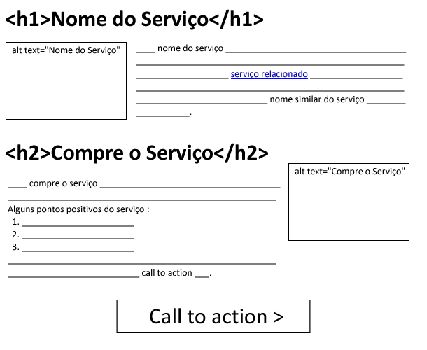 - O título da página deve conter o nome do serviço e não deve conter o nome da sua marca;
