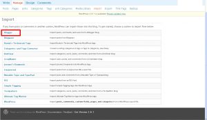4º Passo: Você agora pode importar todos os seus antigos posts para a nova plataforma WP, caso você não ache pelo wp admin, www.seusite.com.br/wp-admin/import.php , vide imagem abaixo a localização do botão de importação.