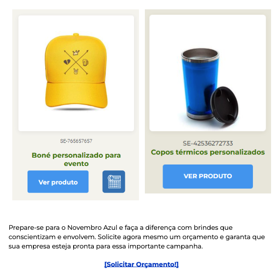 Foi o que fez um dos clientes da Agência Mestre, do segmento de brindes ecológicos. Durante o Novembro Azul, a Sacola Ecológica adotou uma abordagem estratégica ao unir propósito e oportunidade sazonal, promovendo brindes corporativos sustentáveis para empresas que desejavam se posicionar de forma mais consciente na campanha de saúde masculina.