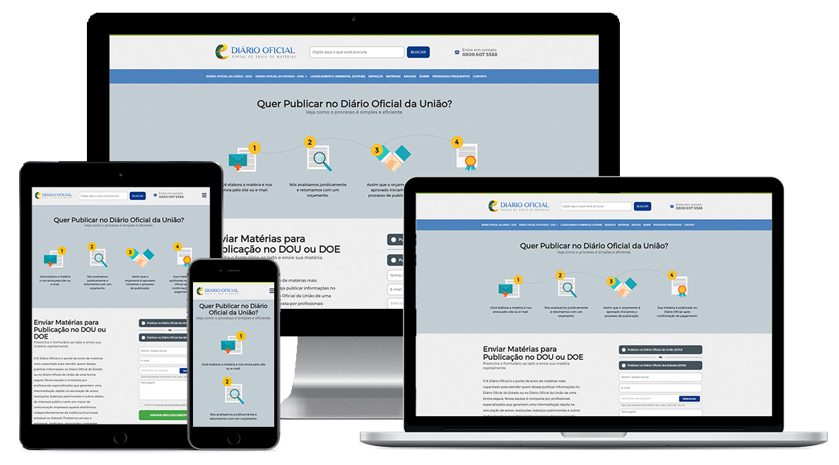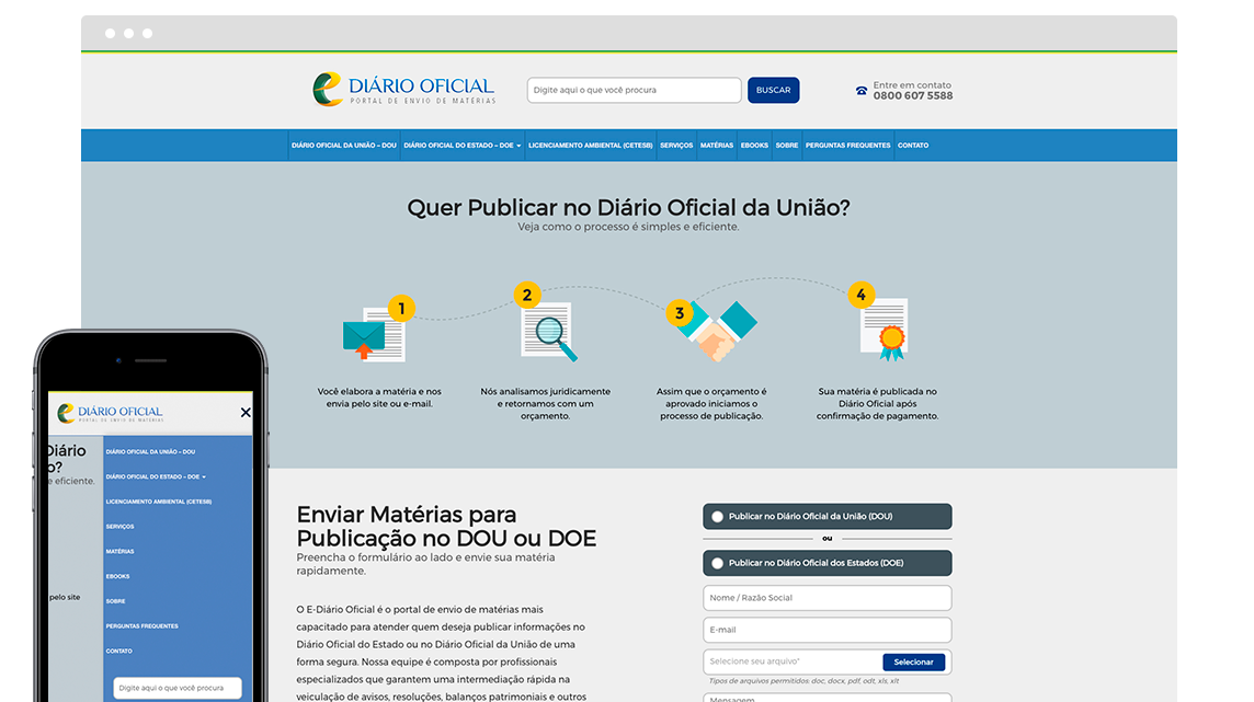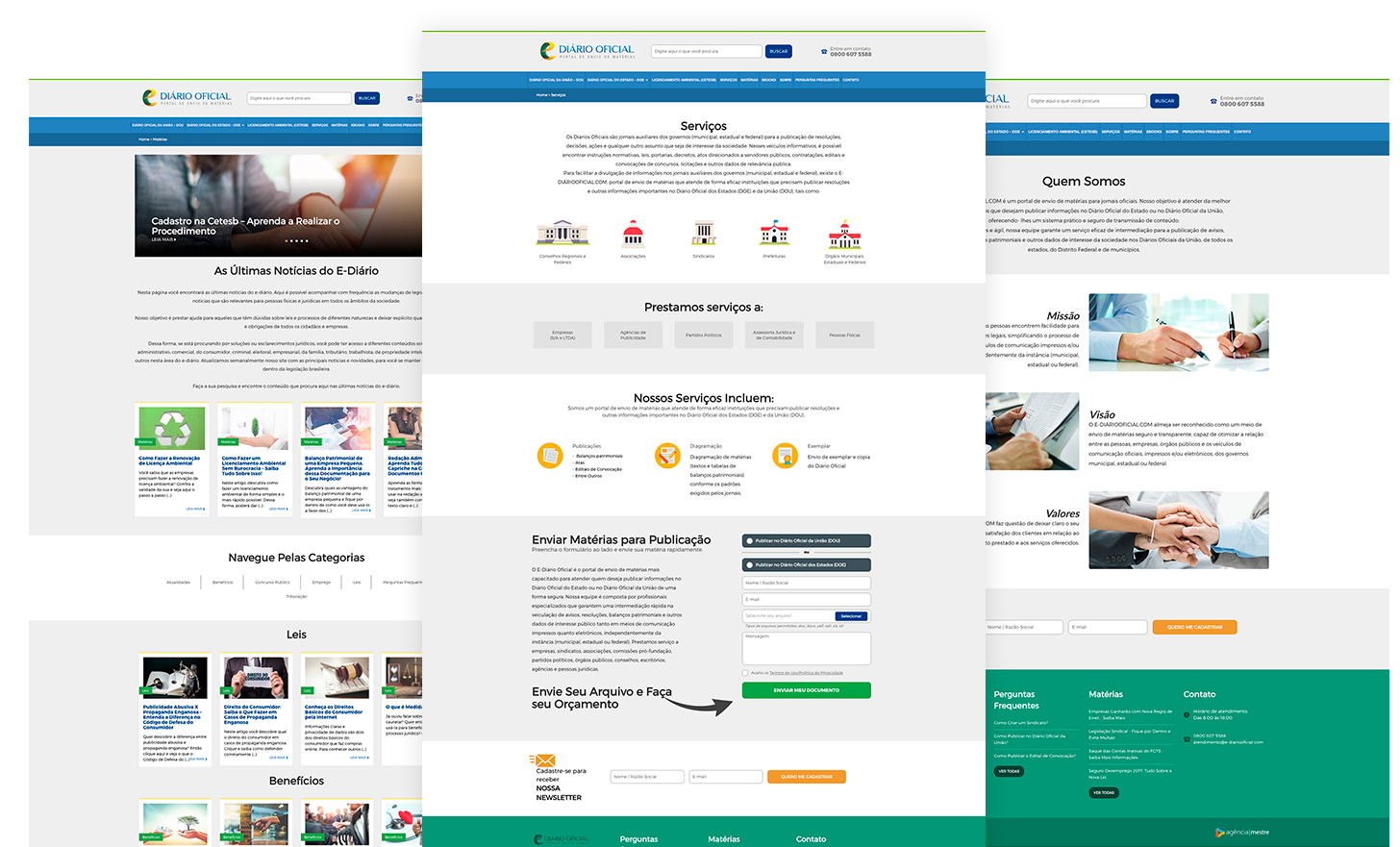 Publicado em janeiro de 2017, o novo site da E-diário foi criado para reforçar a estratégia de SEO e criação de conteúdo em parceria com a Agência Mestre. O lançamento do site viabilizou o início das estratégias de Inbound Marketing que potencializaram a geração de leads interessados em anúncios no Diário Oficial.