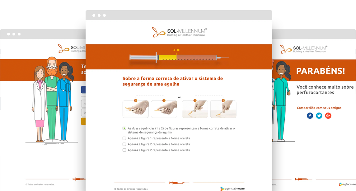 Referência em SEO no Brasil, a Agência Mestre foi escolhida pela Sol Millennium no Brasil para ampliar a presença orgânica nos buscadores. Simultaneamente, deu início a um contrato experimental de Inbound Marketing, em outubro de 2015. Renovada em 2016, a parceria entregou os melhores números para o board global e se tornou referência para a internacionalização da estratégia. O principal desafio era disseminar a cultura de segurança entre enfermeiras e profissionais de saúde do Brasil e apoiar a estratégia de venda complexa de dispositivos de segurança para perfurocortantes.