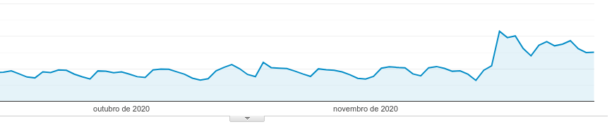 Em 2020, também criamos otimizações para as páginas de Black Friday e obtivemos um retorno muito positivo. Podemos analisar no gráfico a seguir que, a partir das duas últimas semanas de novembro (período da Black Friday), tivemos um ótimo avanço no tráfego do site.