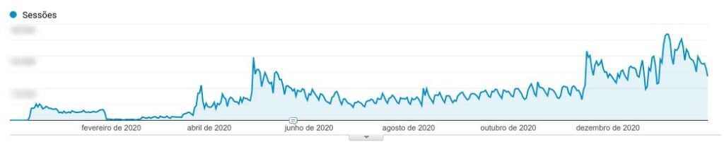 Ainda comparando o período de janeiro de 2020 com janeiro de 2021, vemos um crescimento exponencial nos números quando olhamos apenas para o tráfego orgânico: