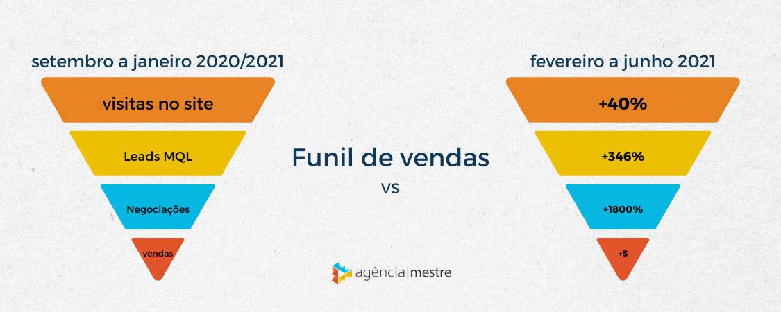 Ao analisarmos o cenário comercial, tivemos uma grande conquista, ao mesmo tempo em que aumentamos as vendas, reduzimos em 70% os valores de custo por lead MQL (Marketing Qualified Leads ou Lead Qualificado de Marketing), desde fevereiro de 2021 a junho de 2021.