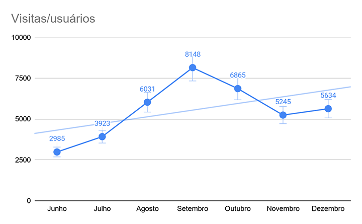 Em apenas sete meses de projeto, pudemos ver que os números começaram a crescer. Alcançamos um pico de acessos no período crucial para o Colégio, a partir de agosto/setembro, quando são iniciadas as campanhas de matrícula para o ano seguinte.