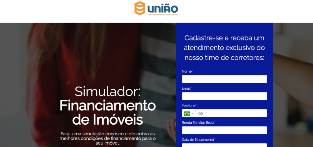 A criação da landing page de “Simulador de Financiamento” foi um dos maiores destaques da estratégia, gerando uma quantidade expressiva de leads qualificados ao longo do projeto! Essa LP é direcionada para os nossos leads fundo de funil, onde os convidamos a realizar uma simulação de financiamento para a conquista do novo imóvel. Durante a simulação, solicitamos alguns dados e com base nisso, o time comercial da Construtora União pode entrar em contato com as melhores oportunidades e condições.