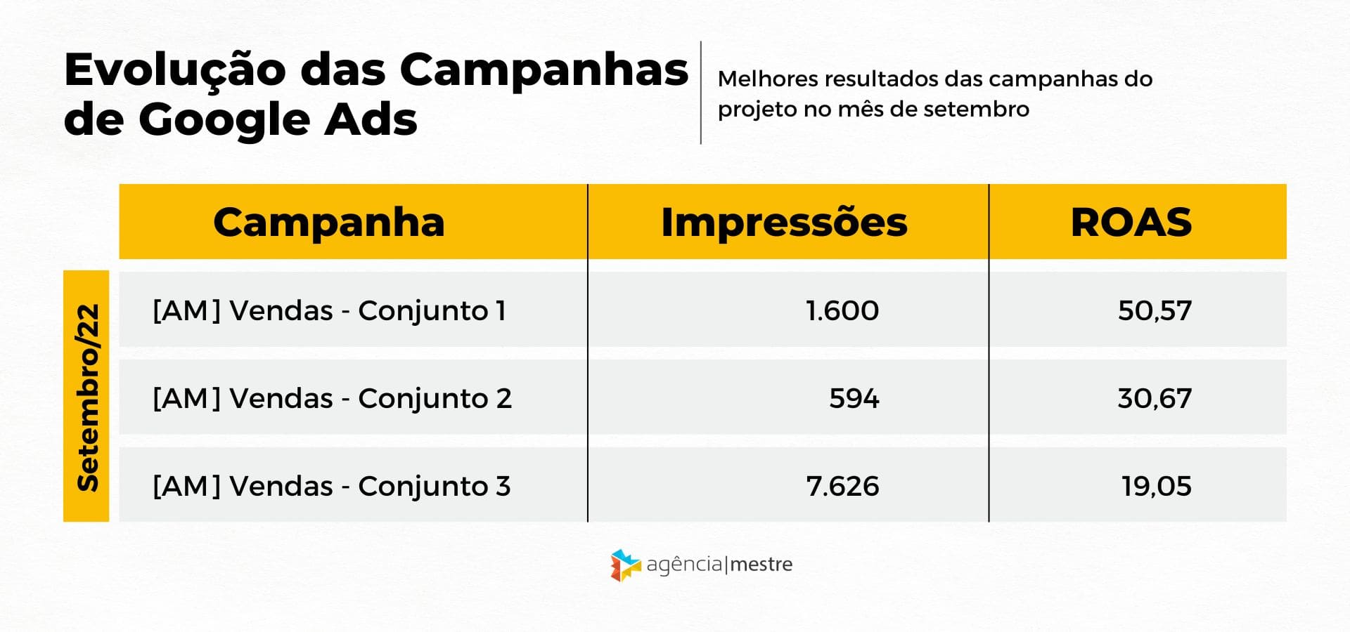 Além disso, apenas no mês de setembro tivemos um dos melhores ROAS em campanhas do Google Ads: