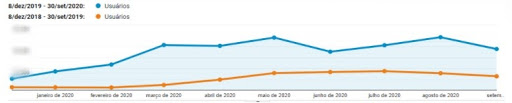 Analisando o período que compreende dezembro de 2019 a setembro de 2020, podemos notar um crescimento no tráfego orgânico: