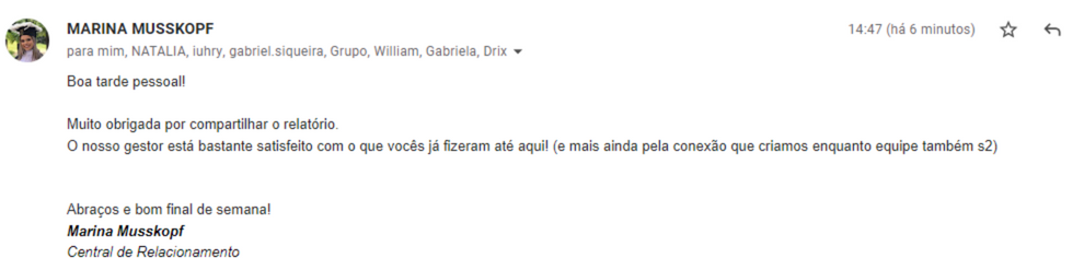 Para alcançar resultados tão satisfatórios como esses foi preciso uma verdadeira parceria entre a nossa equipe de Mestres e o excelente time de Univates. Graças ao acompanhamento contínuo da Marina e do Gabriel e seus feedbacks criamos uma conexão em nossas ações, o que resultou no atingimento das metas do projeto.