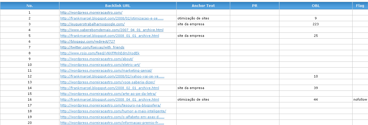 Muito bom o artigo, será de bastante utilidade para descobrirmos nossos backlinks.