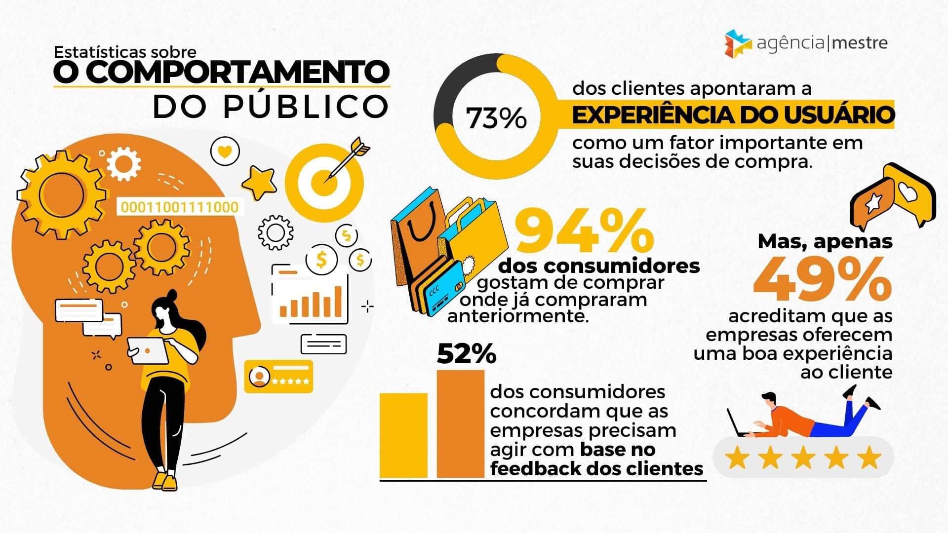 Essa informação aparece não somente na pesquisa da Walker Info, como também em um estudo realizado pela PwC, na qual 73% dos entrevistados apontaram a experiência do cliente como um fator importante em suas decisões de compra.