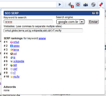 Outro detalhe adicional é que esta extensão também exibe posicionamento no AdWords, quando este existe.