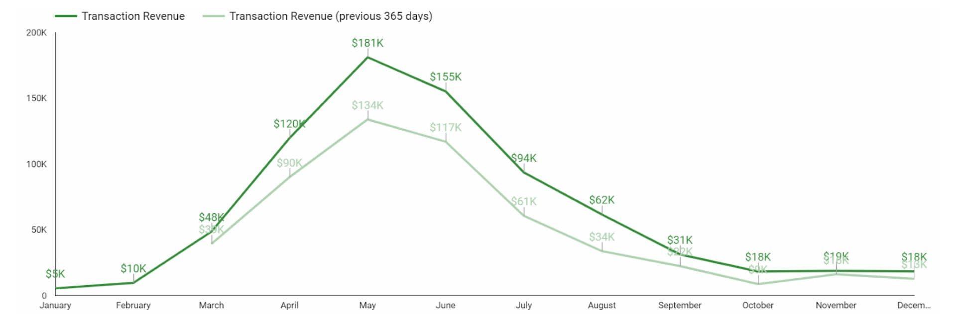 Para comparar dois períodos de tempo: basta utilizar um gráfico de série temporal e selecionar um intervalo de datas de comparação.