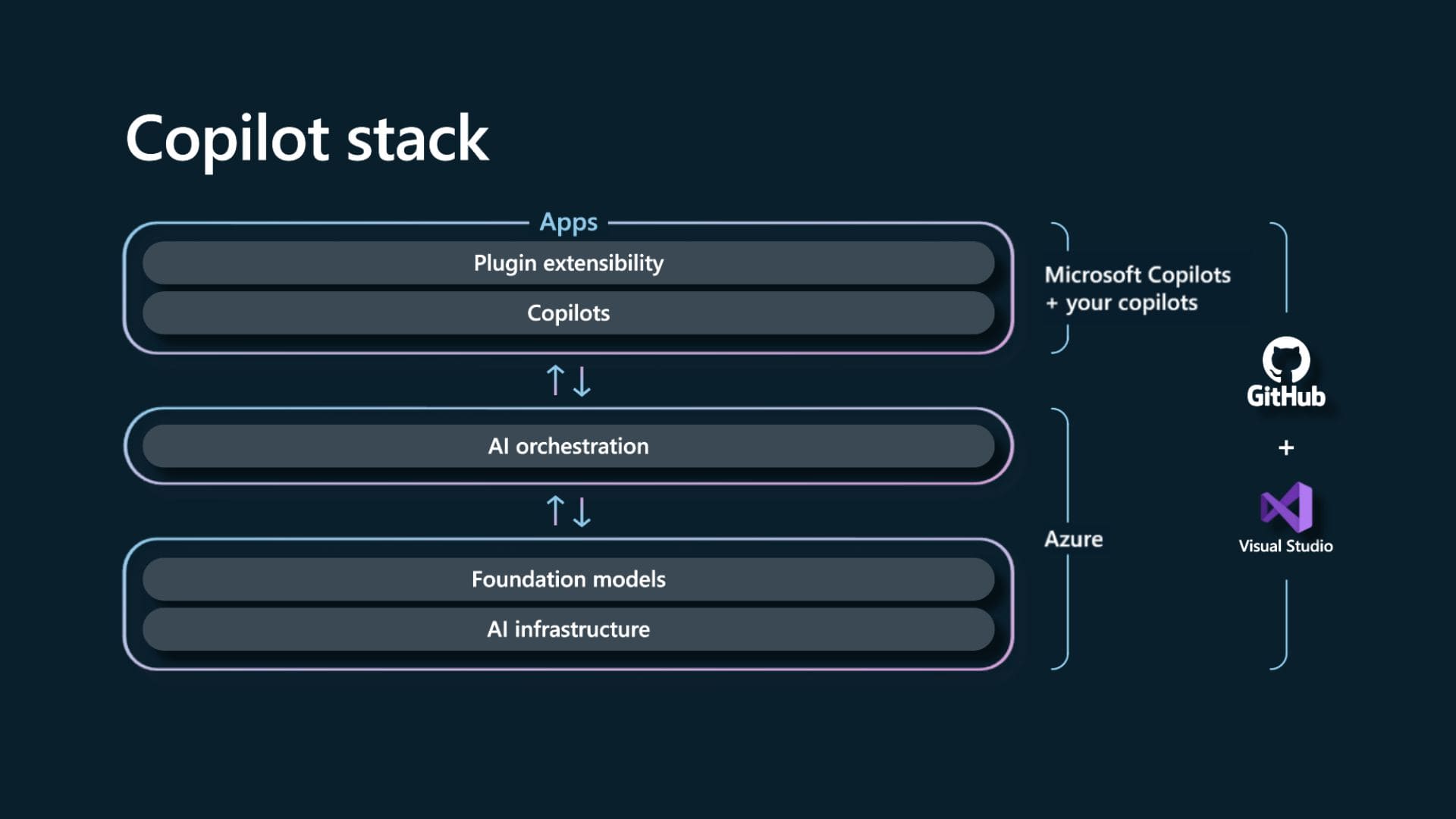 A Microsoft também está investindo em recursos e ferramentas para integrar o Copilot a outros softwares e serviços – os plugins – para auxiliar desenvolvedores na criação de seus próprios copilotos e aplicativos de IA de última geração.