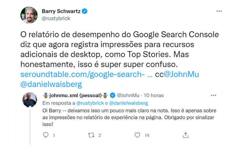 De acordo com Barry, a atualização deixou as informações confusas, pois imaginava-se que o Search Console já rastreasse tais informações sobre as principais notícias para desktop, assim como faz no mobile, visto que o relatório está disponível desde janeiro.