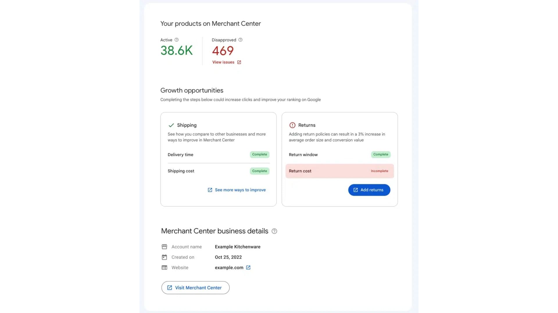 “A segunda melhoria mostra aos comerciantes oportunidades de aumentar os cliques e melhorar a classificação dos produtos no Google”.