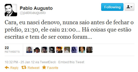 Estava seguindo o Pablo Augusto pelo Twitter. Porém, nem sequer procurei saber ond ele trabalhava. O seguia por ser um profissional que divide conteúdo relevante.