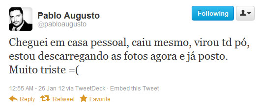 Para os que ainda não conhecem, o Pablo Augusto é um dos fundadores da agência NUVA, que tinha sua sede exatamente em um dos prédios que desabaram no Rio. Todos da agência estão bem, mas como o próprio Pablo comentou, “tudo virou pó”.