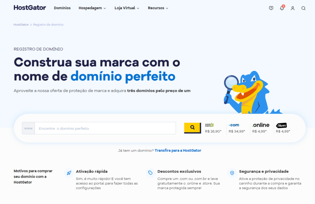 - Facilidade de Uso: A plataforma da Hostgator é intuitiva e pensada para que qualquer pessoa, mesmo sem experiência técnica, consiga registrar um domínio em poucos minutos.
