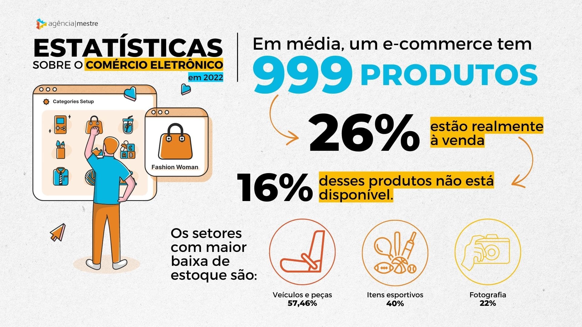 De acordo com o estudo, a maioria das lojas online têm – em média – 999 produtos, sendo os varejistas de autopeças os maiores em termos de produtos (7937 códigos cadastrados), seguidos por itens de casa e jardim (6.819 códigos cadastrados) e vestuário (6.454 códigos cadastrados).