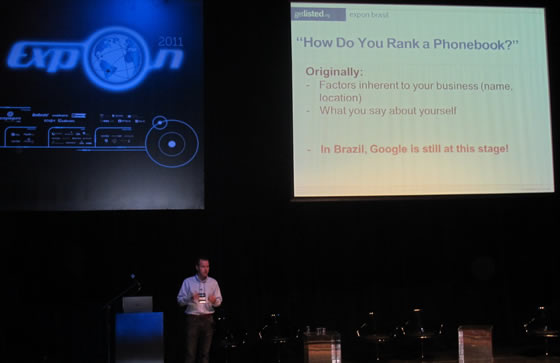 A palestra sobre Local Search do ExpOn 2011 contou com a presença de David Mihm, autoridade no assunto, dono de uma das mais importantes pesquisas sobre Local Ranking Factors e e co-fundador do GetListed.org.