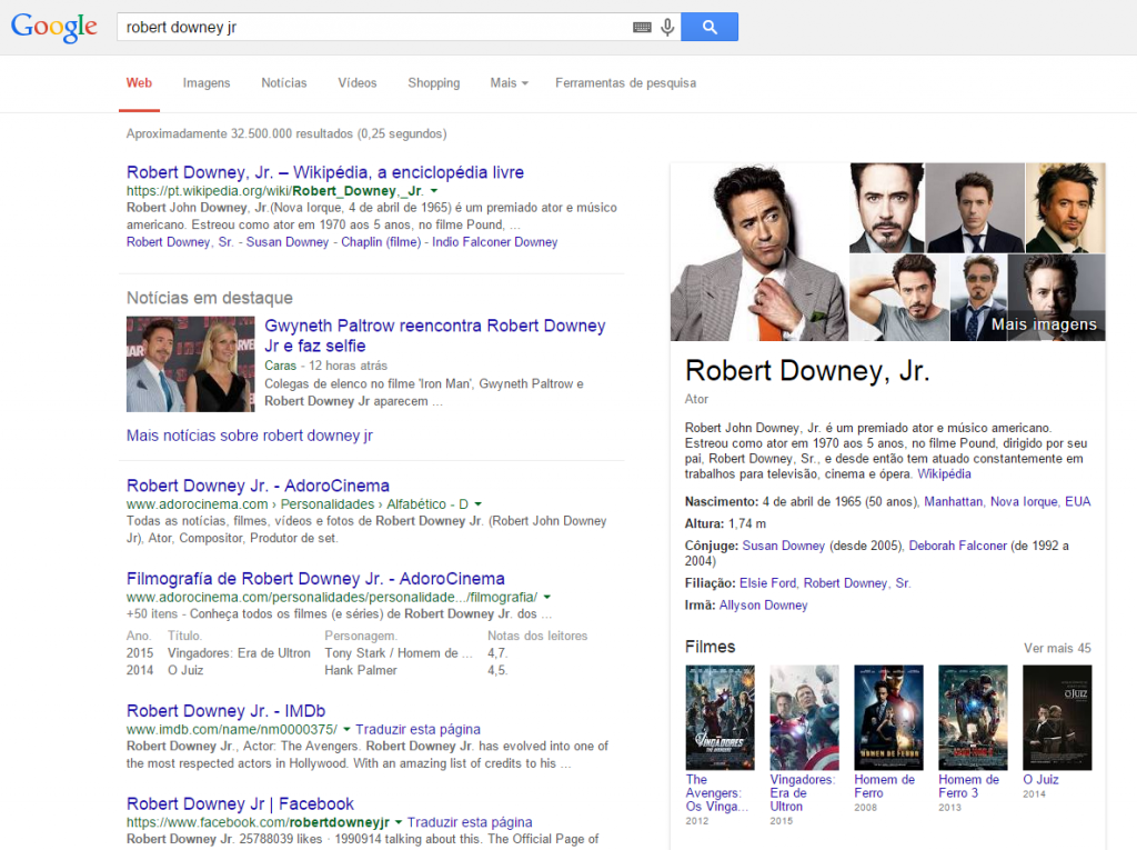 Já o Google, possui cada vez mais resultados seus dentro do próprio TOP 10, tal como o knowledge graph: