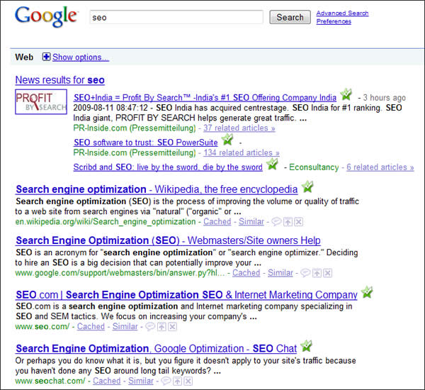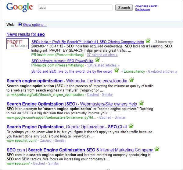 Eu testei algumas buscas e as diferenças entre os resultados foram pequenas. Aqui vai um exemplo sobre a busca SEO: