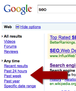 Pois bem, o tempo passou e o Google não ficou para trás. Através dos controles avançados do Google (apenas na versão em inglês), é possível filtrar os resultados através de tempo.