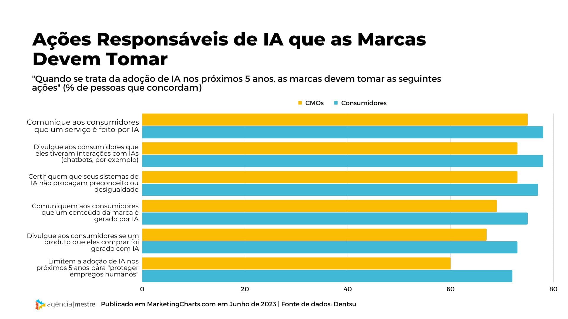 No entanto, para que a IA seja utilizada de forma responsável, existem certas ações que as marcas precisam tomar. Confira os dados coletados pela Dentsu e entenda como utilizar a IA de forma responsável no seu negócio: