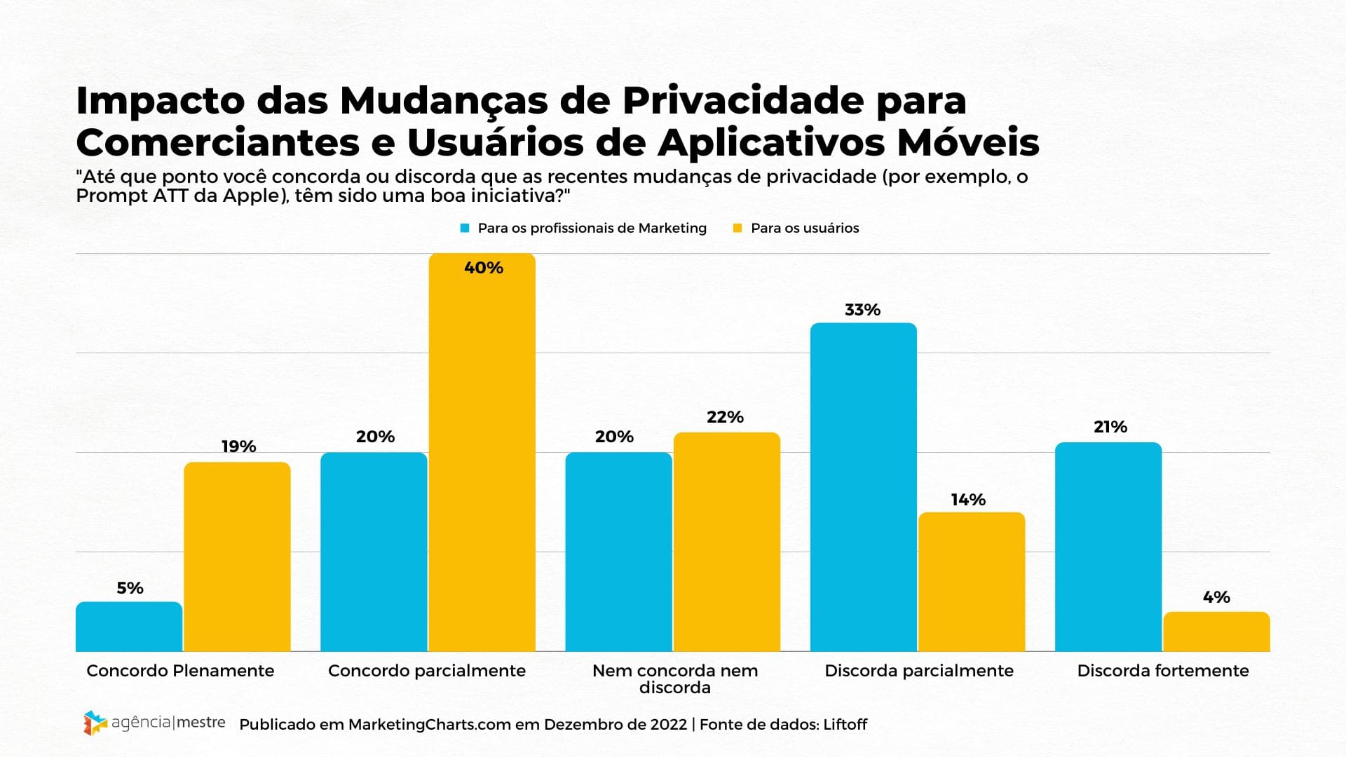 Mas, de forma geral, os profissionais consideram que a implementação do prompt foi uma coisa boa para os usuários dos aplicativos (19% concordam totalmente e 40% concordam de certa forma). No entanto, quando se trata dos benefícios para as empresas, apenas 25% concordam que foi uma iniciativa favorável.