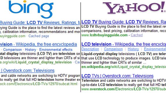 Pouco mais de 1 ano após o anúncio de que o Yahoo! exibiria resultados de busca baseados na Search Engine do Bing, capturamos os primeiros resultados iguais nas ferramentas. Ainda não é uma mudança generalizada, mas esta deve se completar até o início de 2010. Veja o histórico e os screenshots das Search Engines.