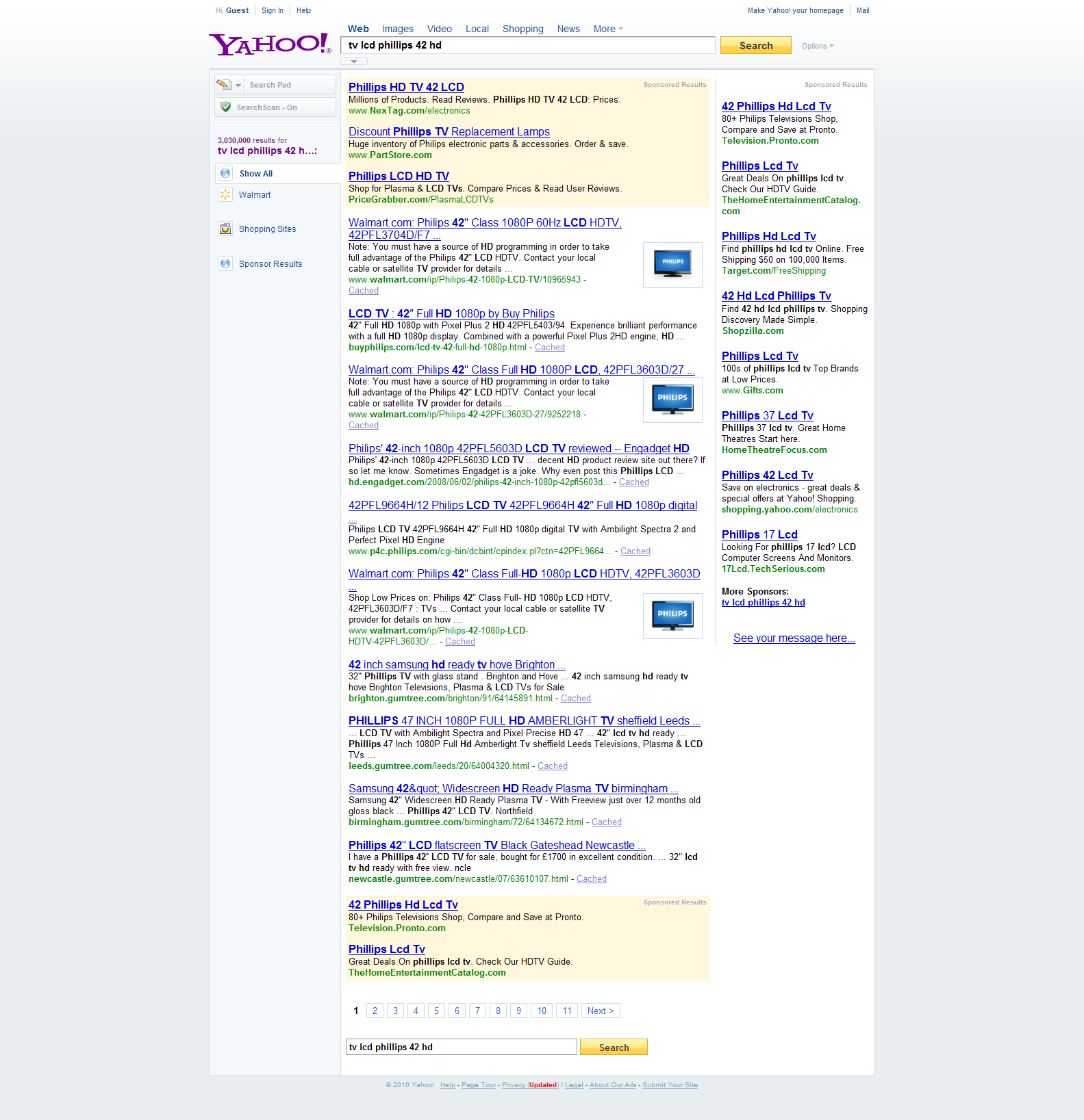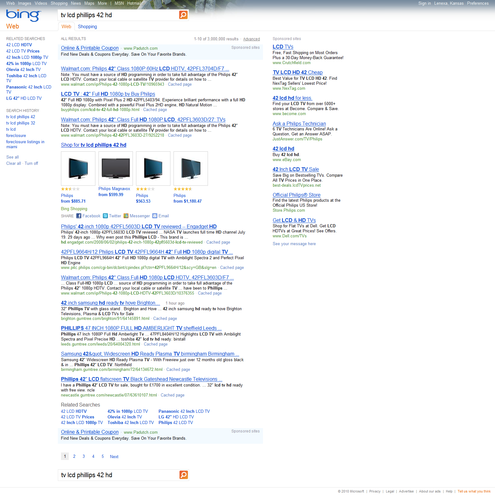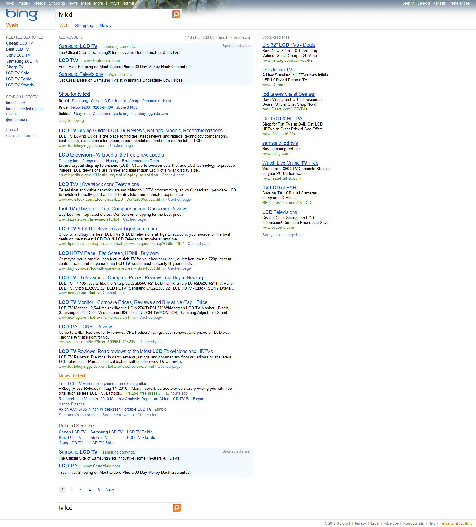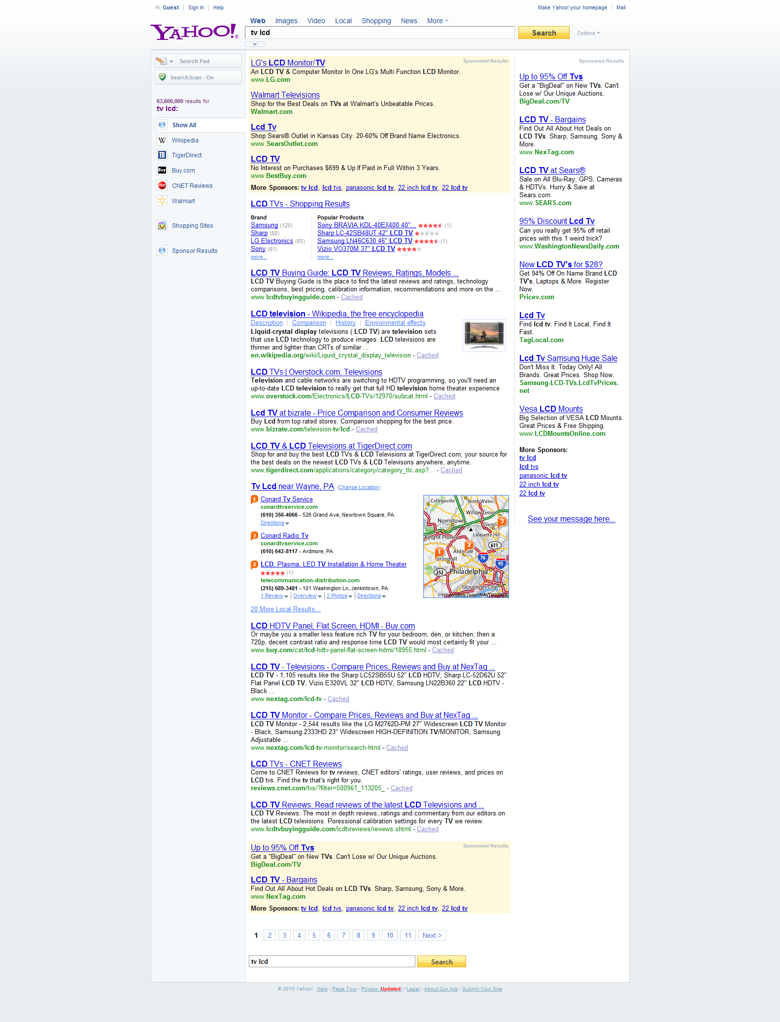 Busca TV LCD no Bing e Yahoo!