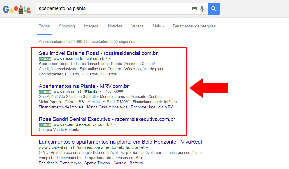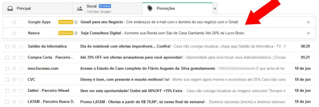 O próprio Google utiliza muito bem esse formato de native ads, tanto no buscador, como no Gmail. Nesses canais, um anúncio é muito similar ao que o usuário está costumado a ver.