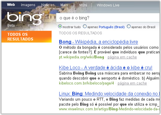 Bing é o substituto do Live Search e do MSN Search, agora, bing é novo buscador da Microsoft.