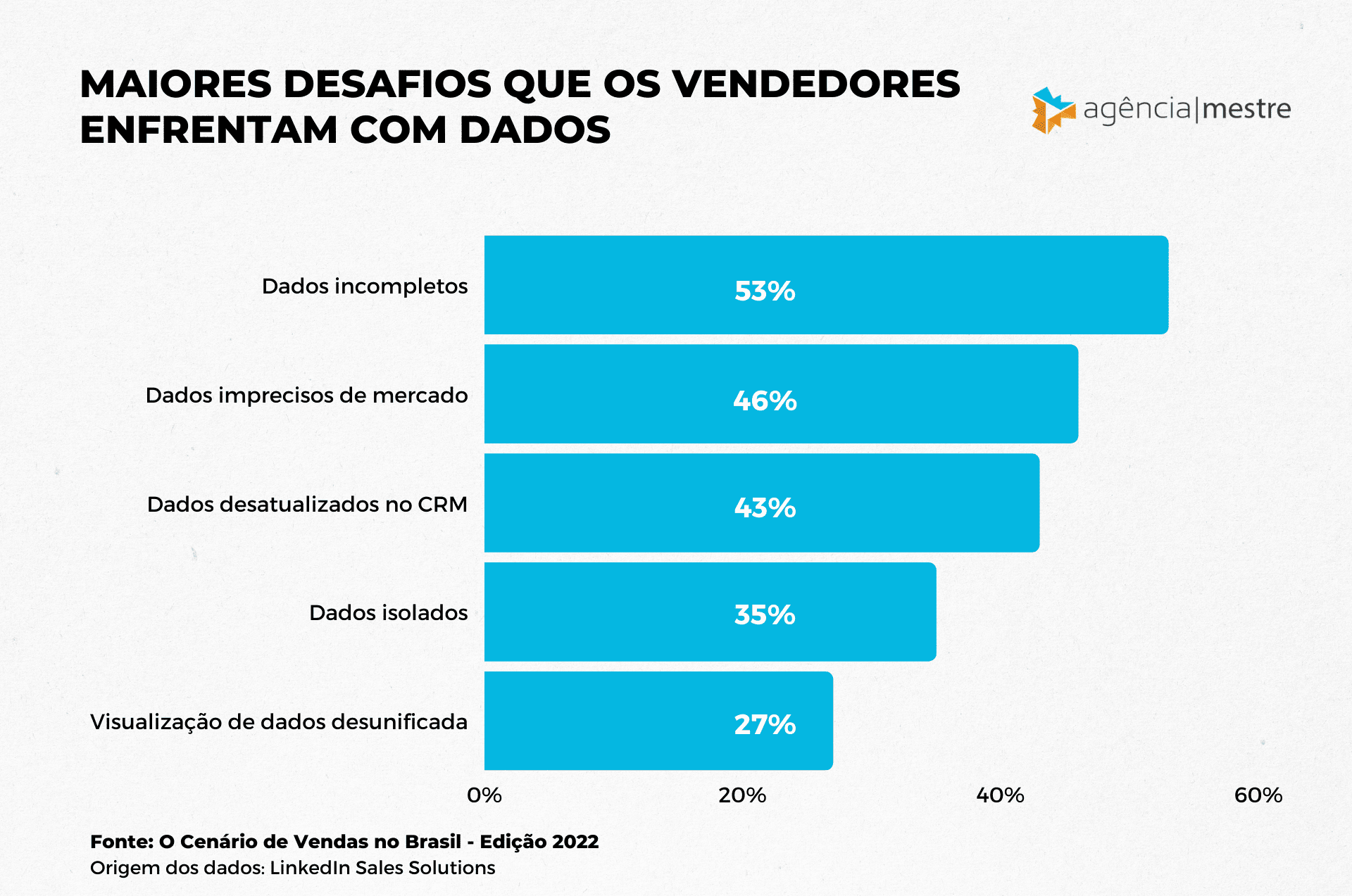 A insuficiência ou imprecisão de dados é uma preocupação constante dos times de Marketing e Vendas. Essa informação já tinha sido observada no parâmetro mundial pela Ascend2 em seu relatório “The State of Marketing and Sales Alignment 2022” e foi reafirmada no cenário nacional pelo LinkedIn.