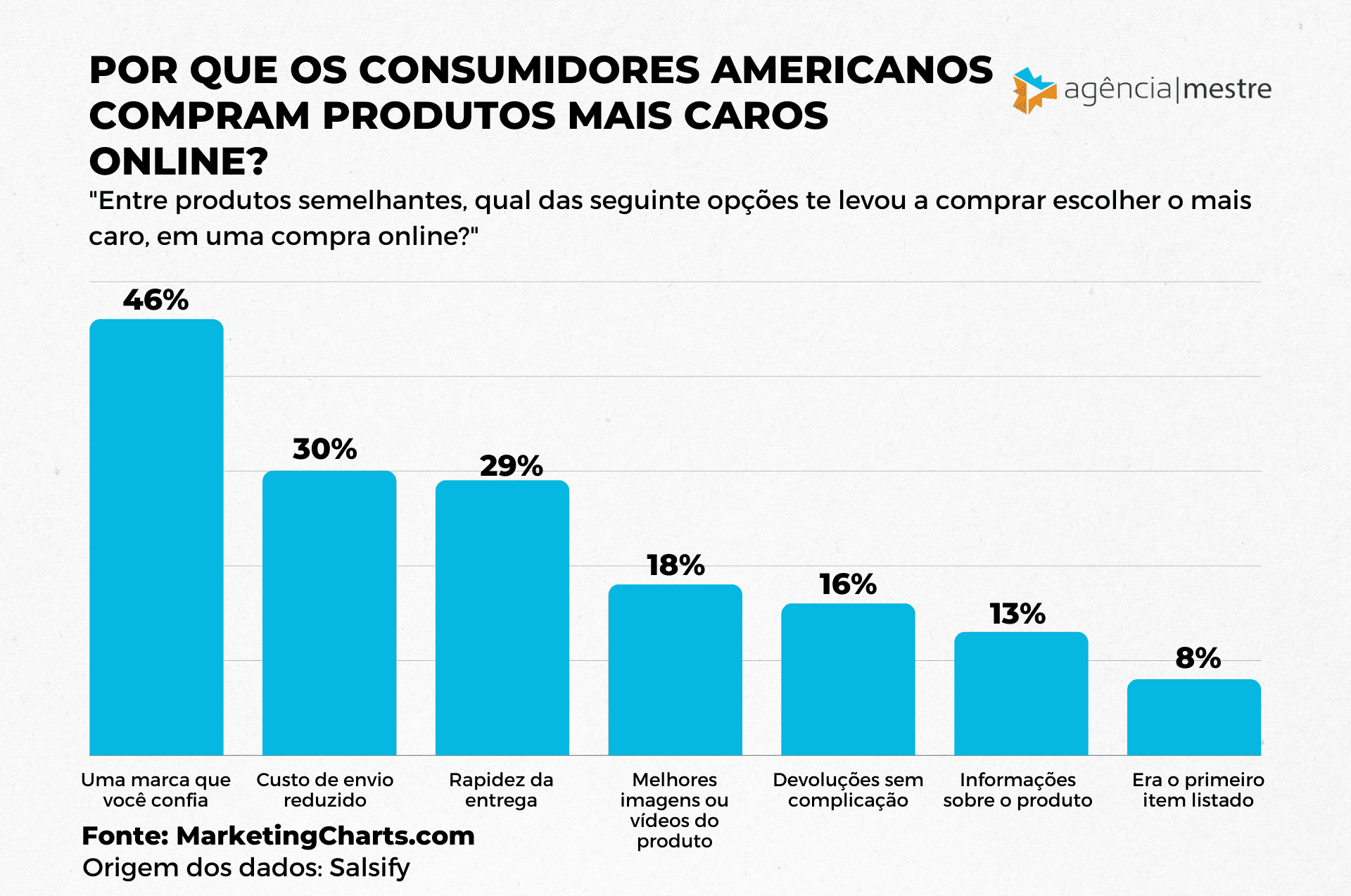 O relatório “Consumer Research 2022”, da Salsify, entrevistou mais de 4.000 pessoas para entender os impactos no comércio, causados ao longo da pandemia. A empresa descobriu que, considerar uma empresa confiável é a principal razão pela qual os consumidores optam por um produto mais caro.
