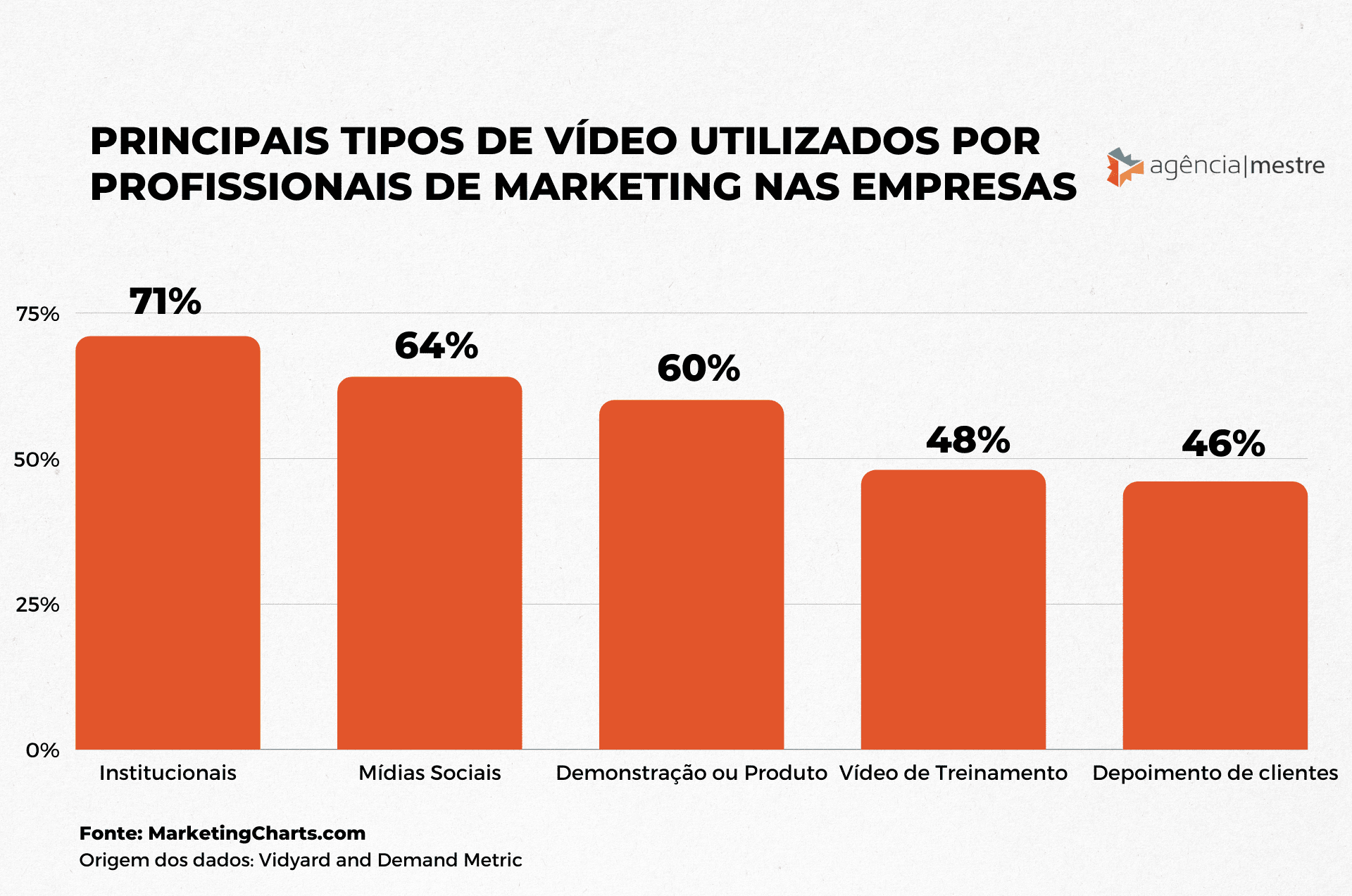 Nessa análise, os tipos de vídeo usados pela maioria dos profissionais de marketing são: