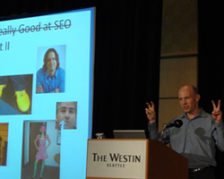 Em seguida, o próprio Rand Fishkin continuou com uma palestra chamada “Structurally Sound: SEO for Site Architecture” onde o foco era falar sobre a arquitetura de websites no trabalho de SEO. Ele começou mostrando algumas dicas de como maximizar o potencial da navegação do seu website, e sem seguida falou um pouco sobre o uso de sitemaps HTML. Ainda na palestra, ele mostrou algumas dicas de como controlar ou ganhar juice de páginas pouco focadas no trabalho de SEO e ainda sobre como não cometer alguns erros de arquitetura. Por fim, a sua dica para ganhar mais páginas indexadas foi a mais comum: ganhar mais links.