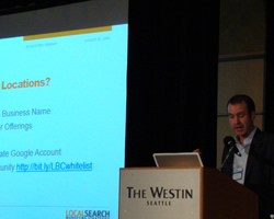Para falar de um tema super quente no momento, subiu ao palco David Mihn, consultor especializado em Local Search e responsável pelo artigo Local Search Ranking Factors. Em sua palestra “Local Search Marketing Strategies” ele abordou 3 pontos principais: