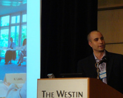 Com um tema muito interessante, Matthew Brown, COO e Co-Fundador da Define Search Strategies, subiu ao palco falando sobre “Maintaining Verticality: News Search + Image Search“. Para iniciar a palestra, Matthew mostrou um pouco sobre a quantidade de tráfego recebida pelos canais de search e imagens dos principais buscadores. Em seguida mostrou algumas ferramentas, tais como Google Insights e Google Adwords Keyword External Tool para realizar um bom keyword research. Entrando na área de News, ele citou dicas para conseguir obter uma matéria/notícia publicada no Google News e Yahoo News. Lembrou bem o caso de se pesquisar muito sobre como escolher bem as palavras que irão compor o título de sua notícia, de forma que os seus usuários busquem pelos termos lá contidos.