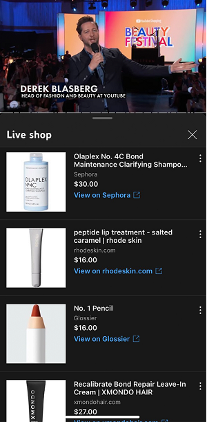 “Os criadores que vinculam suas lojas podem exibir seus produtos em seu canal e se beneficiar da sincronização de inventário em tempo real da Shopify, para que os espectadores nunca fiquem desapontados ao encontrar um produto em falta. E, para uma experiência de compra mais perfeita, os criadores nos EUA podem ativar o checkout no local para que os espectadores possam concluir suas compras sem sair do YouTube.”