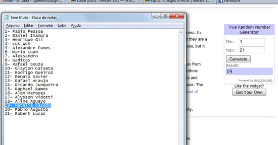 No post do programa, 21 pessoas deixaram comentário concorrendo ao convite e, através do Random.org, o vencedor foi: