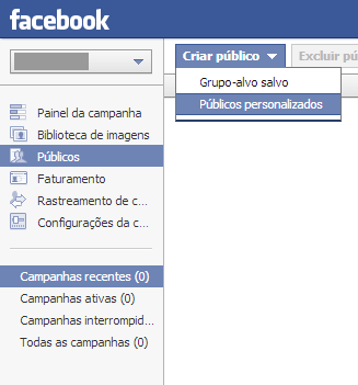 Depois de baixar toda sua conta de anúncios, vá até “Públicos” no canto esquerdo e depois em “Criar Público” e “Público Personalizado”.