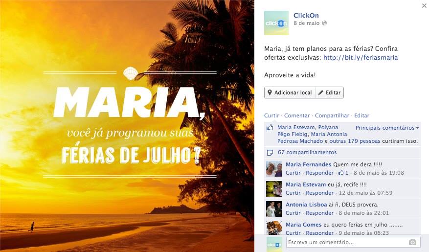 Basta criar a lista segmentada com cada um dos nomes de seus clientes e produzir anúncios para cada uma delas já inserindo o nome da pessoa. Quem é que não gostaria de ser impactado por um anúncio te chamando pelo nome e ainda oferecendo o que é de seu interesse?